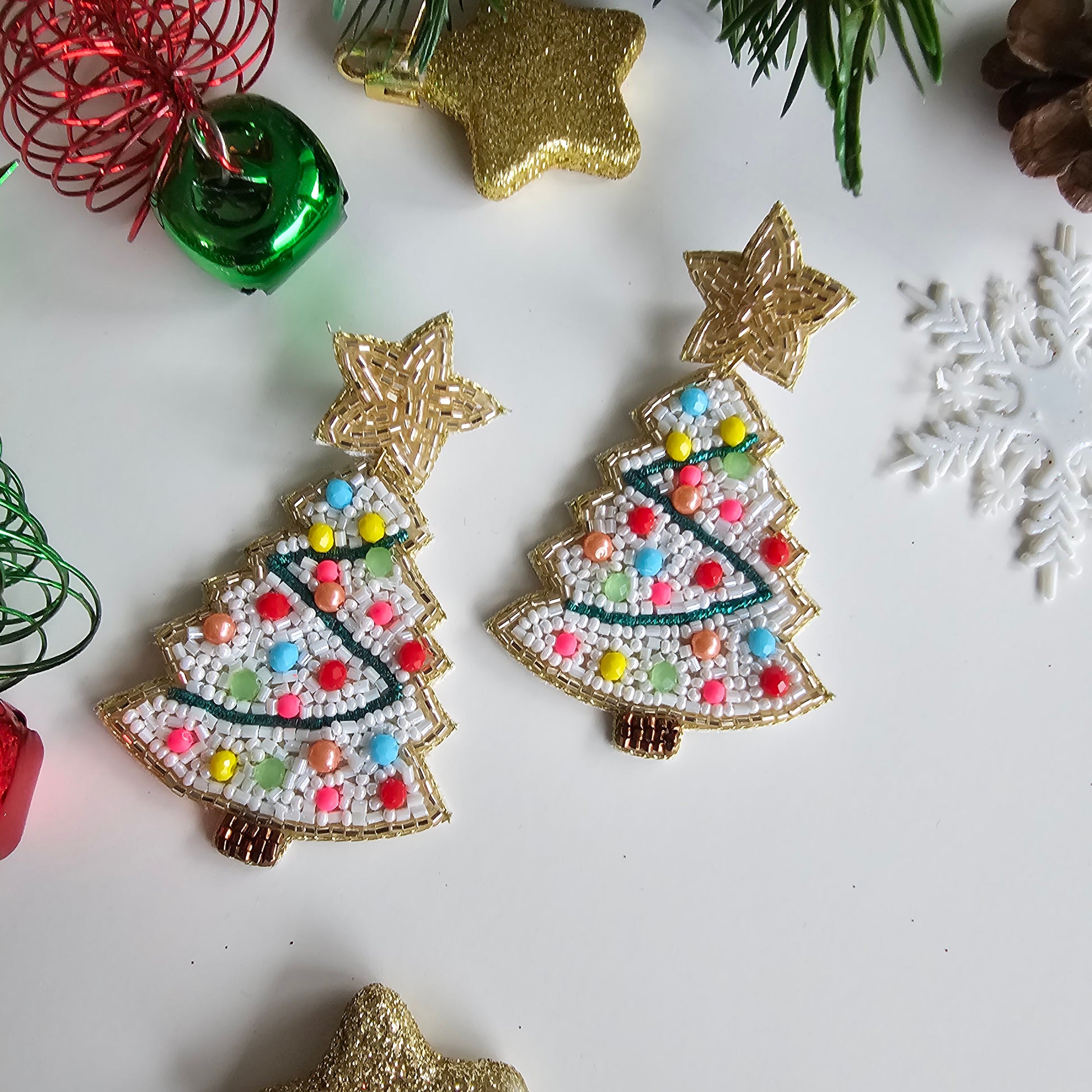 Lightweight and comfortable, our Hand-Beaded Embroidered Christmas Tree Earrings are designed for all-day wear, ensuring you can showcase your festive spirit without compromising on comfort.
