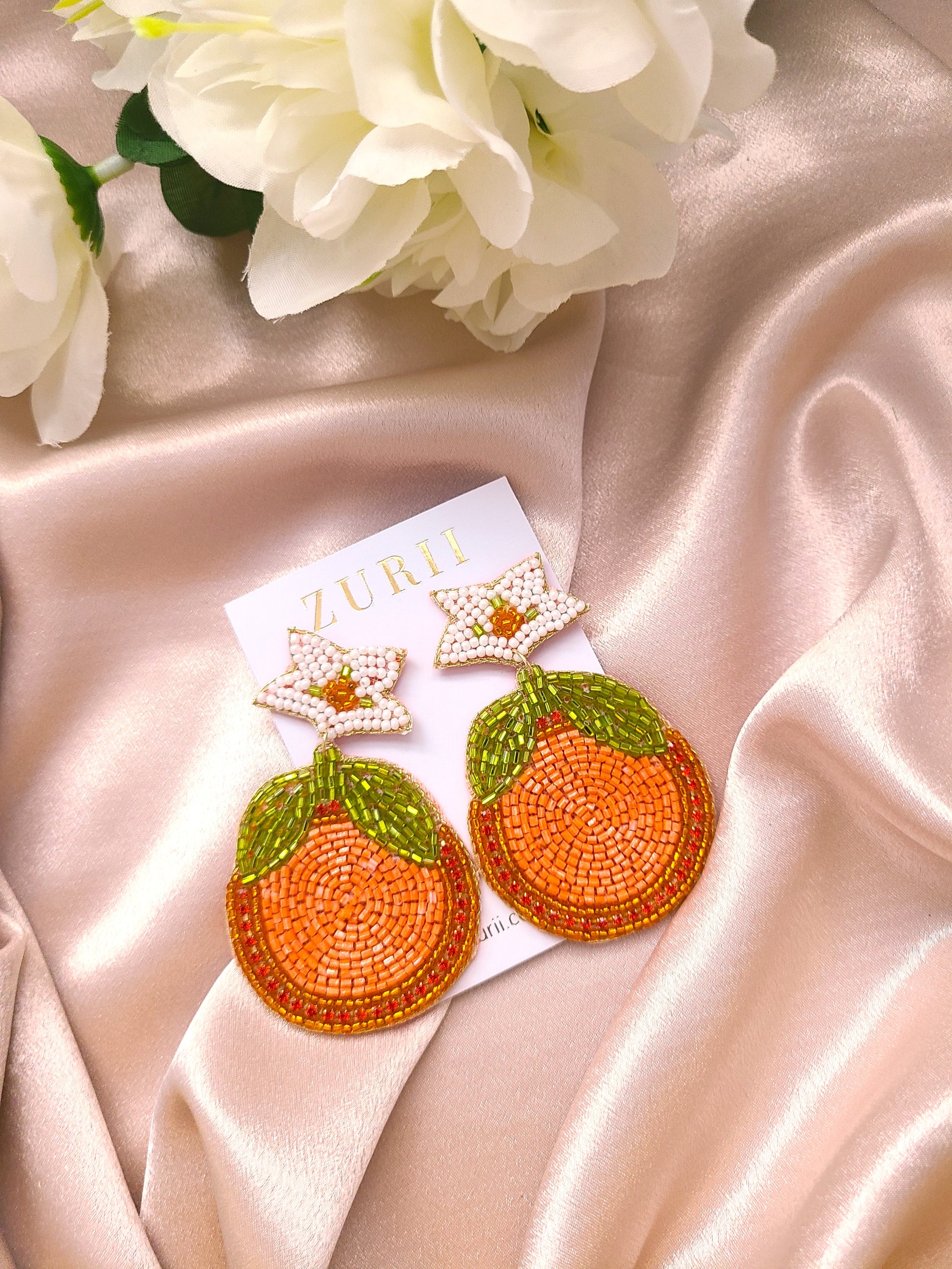 To enhance the visual appeal, we've incorporated shimmering beads that delicately catch the light, adding a subtle sparkle to your look. The beads are thoughtfully selected to complement the vibrant orange color, creating a harmonious and joyful aesthetic.