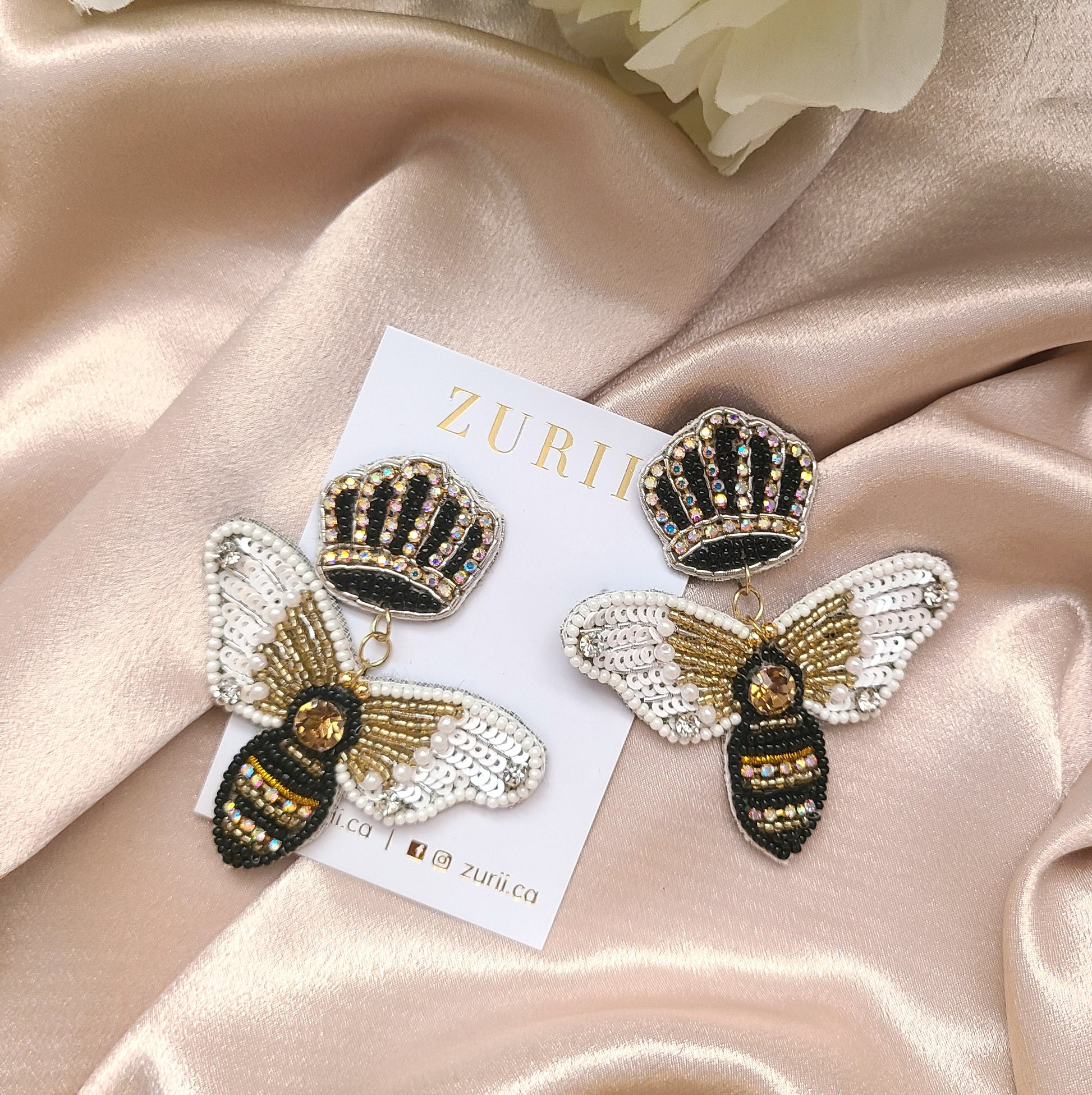 Pair these Hand-Embroidered Beaded Queen Bee Earrings with your favorite outfit to elevate your look and make a lasting impression. Whether you're attending a special event or simply want to add a touch of glamour to your everyday style, these earrings are the perfect choice.
